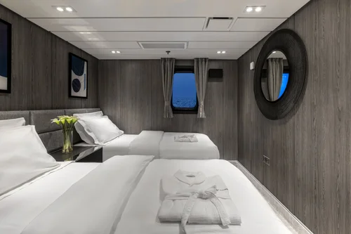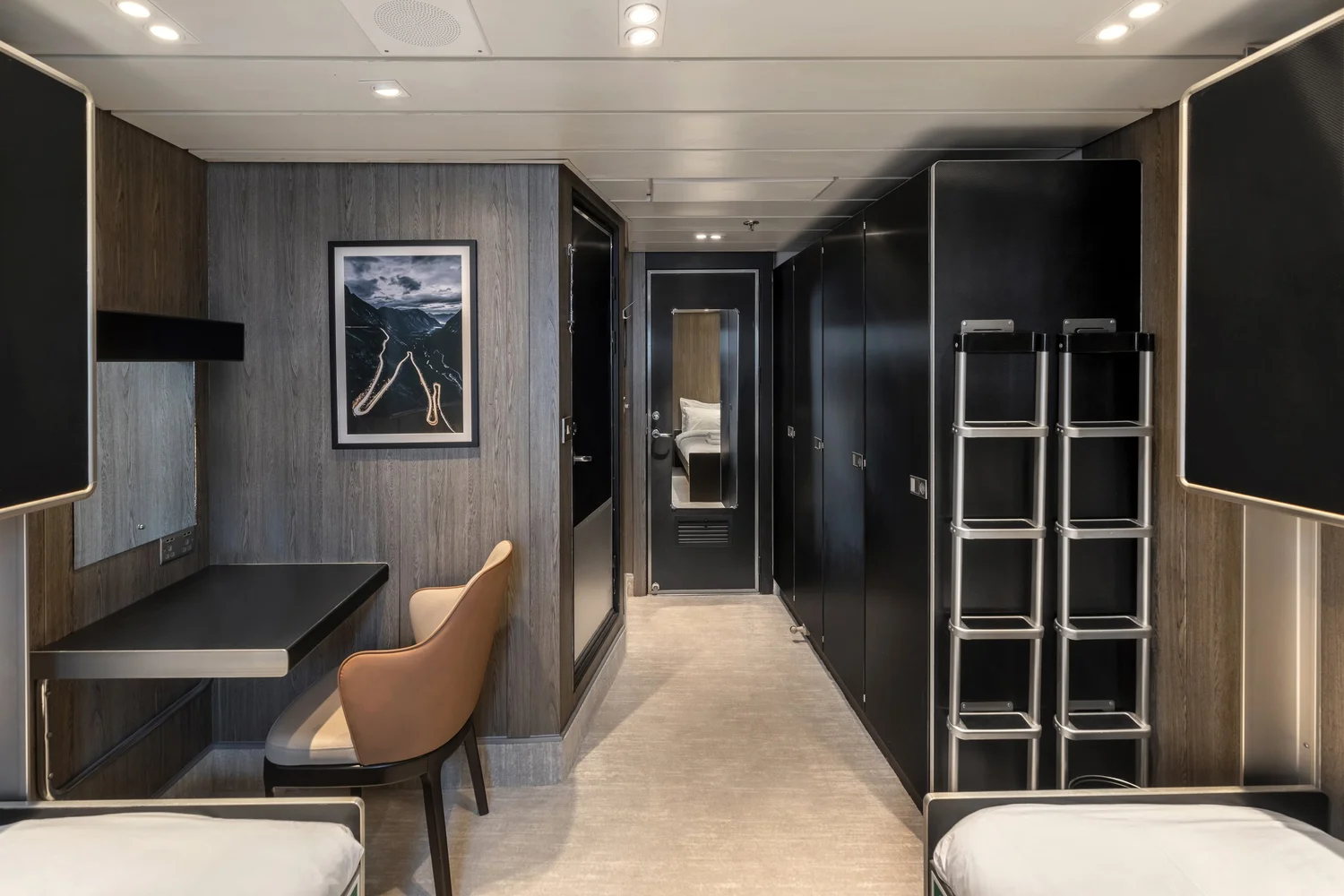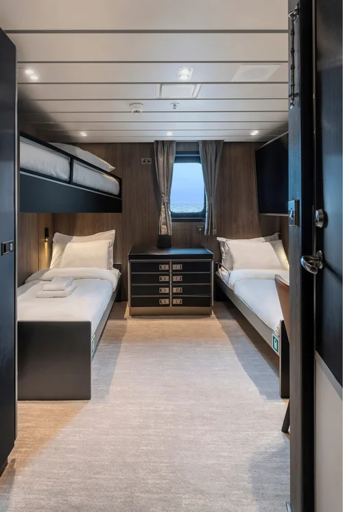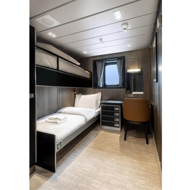 On board, guests enjoy spacious observation lounges, open deck areas, two Jacuzzis, a gym, a spa, and a dedicated science lab designed to bring learning and exploration to life. Cabins are comfortable and modern, with a variety of single, twin, triple and interconnecting options suited to solo travellers, couples, families or friends.