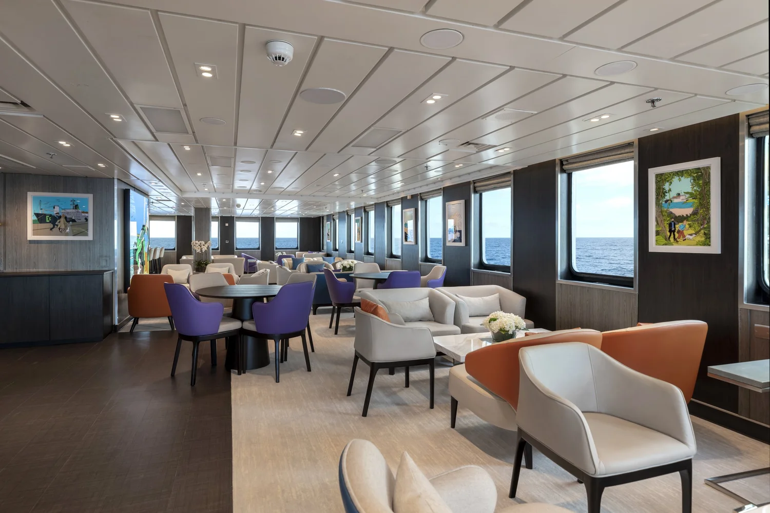 Throughout your voyage, you’ll be treated to thoughtfully crafted meals, engaging lectures, guided shore landings, Zodiac excursions and opportunities to participate in scientific and educational programs. The RMS St. Helena offers a warm, community-style atmosphere that enriches every moment of the journey.